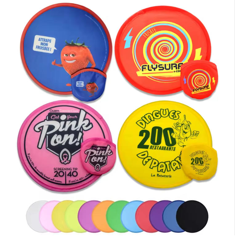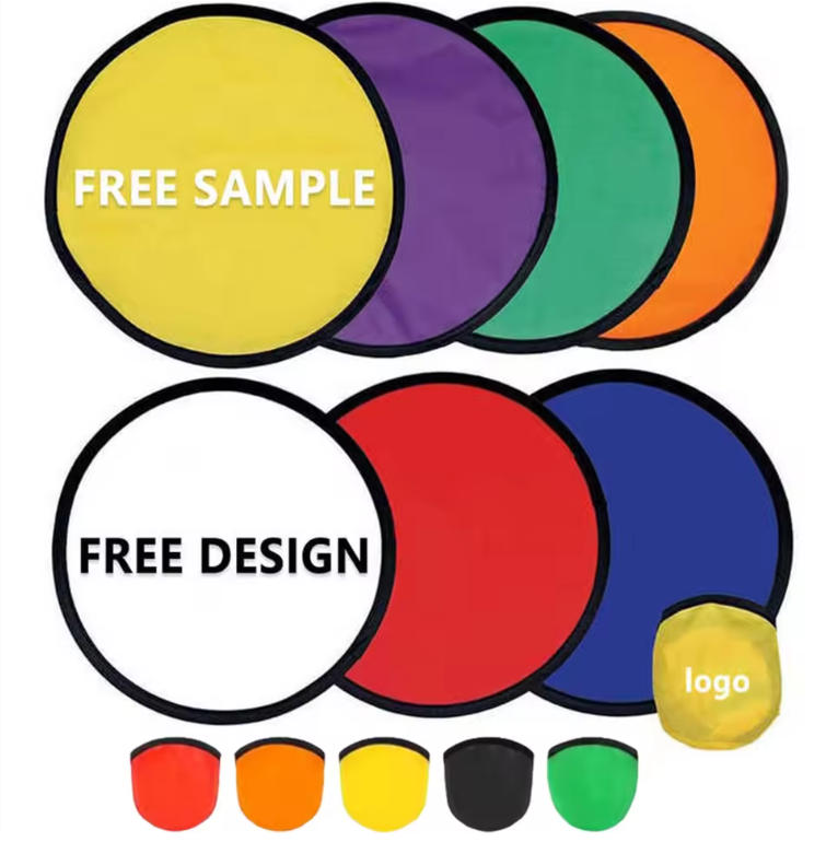 Free Sample Customized Foldable Mini Handheld Fan Collapsible Pocket Nylon Fold Up Hand Fans Round Flying Disc